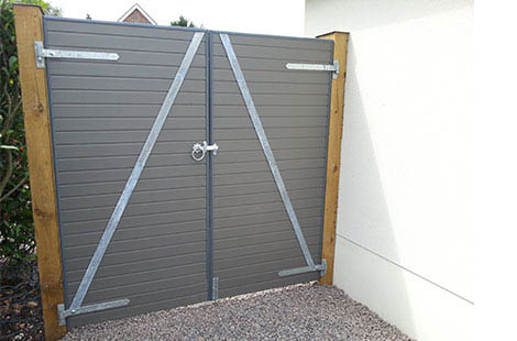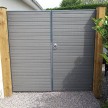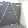 A matching pair of gates for the Eco fencing system. Manufactured using gravelboards with a steel bracing. Comes complete with hinges and rose catch fitted. Can be made in all colours.